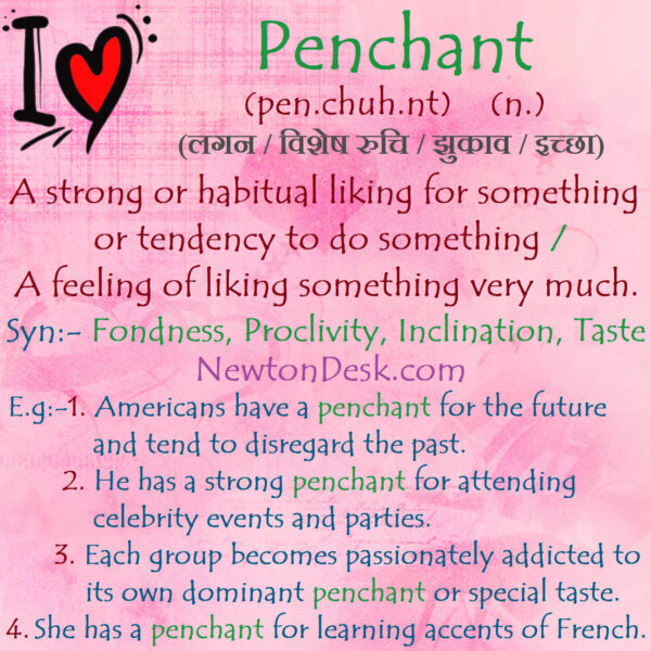 Penchant Meaning Special Liking or Tendency To Do Something Vocabs