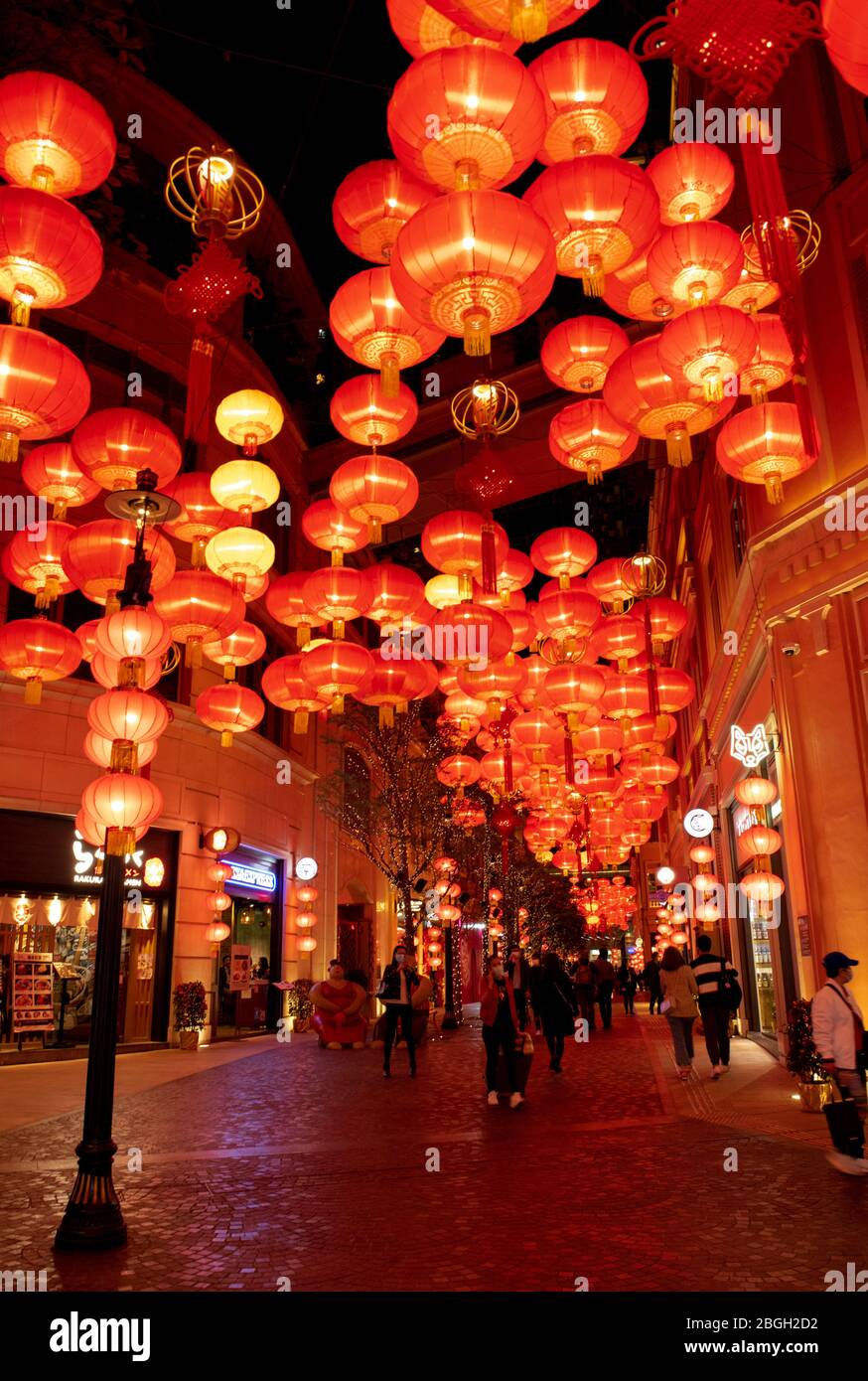 Hong Kong,China21 Feb,2020. Lanterns for Chinese New Year decorate Lee Tung Avenue in Wan Chai