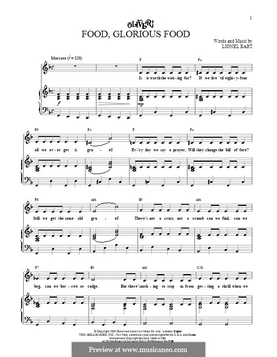 Food, Glorious Food" Sheet Music by Lionel Bart for Piano/Vocal/Chords Sheet Music Now