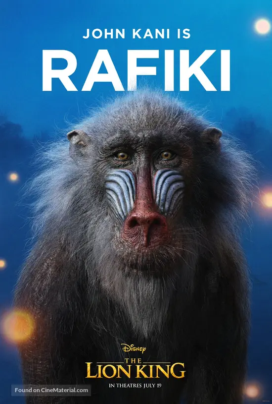 The Lion King is a 2019 American musical drama film directed by Jon Favreau, written by Jeff Nathanson, and produced by Walt Disney Pictures and Fairview Entertainment. It is a photorealistic animated remake of Disney's traditionally animated 1994 film The Lion King.The film stars the voices of Donald Glover, Seth Rogen, Chiwetel Ejiofor, Alfre Woodard, Billy Eichner, John Kani, John Oliver.