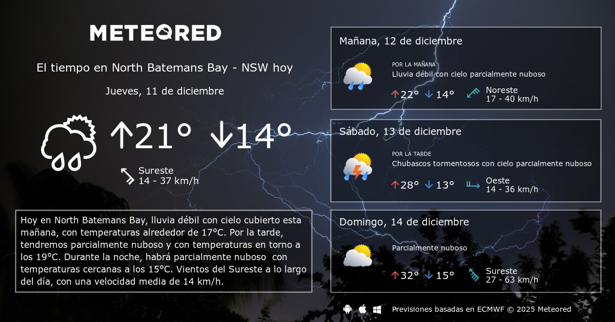 El Tiempo en North Batemans Bay NSW. Predicción a 14 días Meteored