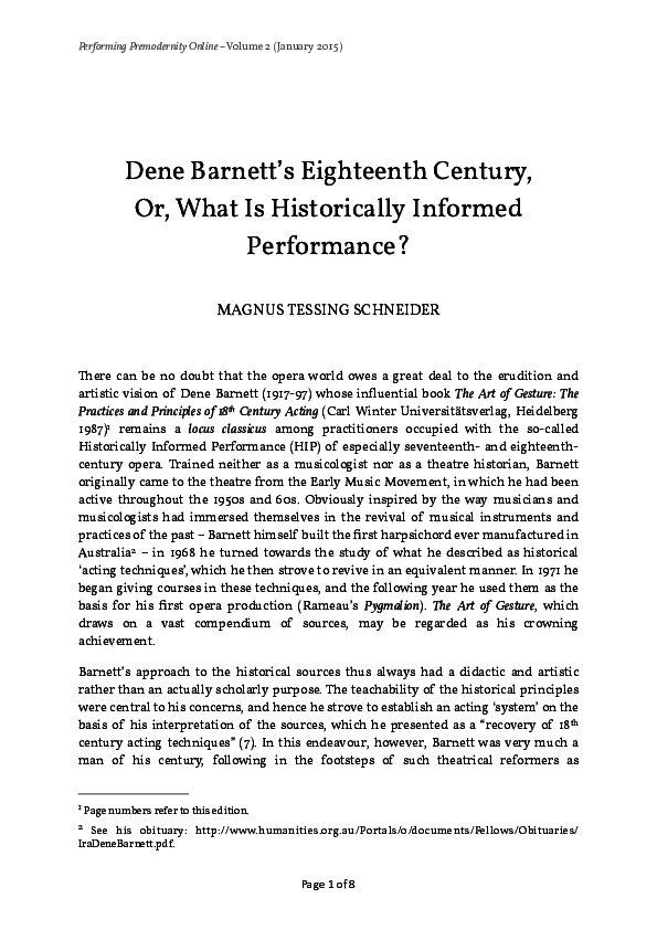 (PDF) Dene Eighteenth Century, Or, What Is Historically Informed Performance Magnus