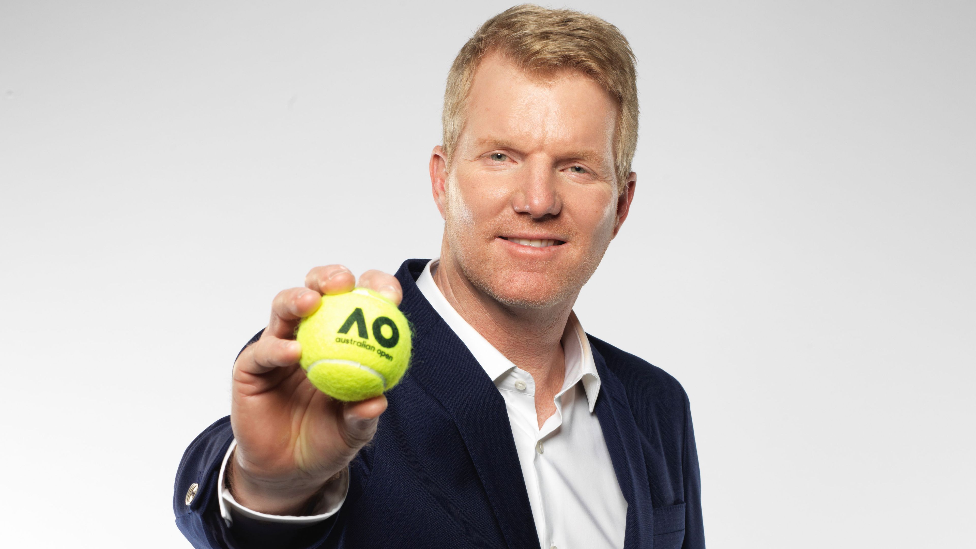 Jim Courier in front of Australian Ninja Warrior's notorious Mount Midoriyama. "Those post-match moments with the players, where they can showcase who they are, when the mask drops for a.
